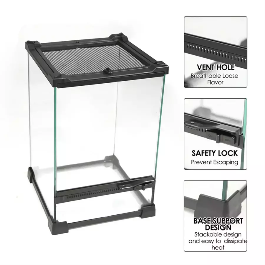 Transforme o habitat do seu pet exótico em um espaço seguro, elegante e envolvente. O EcoTerrarium em vidro temperado oferece visibilidade total, controle de microclima e fácil manutenção – ideal para criar um ambiente natural e confortável para geckos, lagartos, tarântulas, sapos-crista, tartarugas, cobras e outros pequenos répteis e artrópodes.
