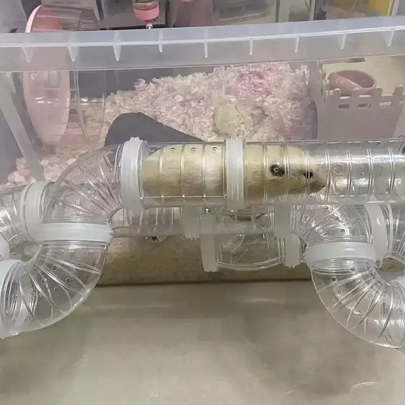 O Labirinto Divertido é um conjunto DIY (faça você mesmo) que permite montar túneis personalizados conectando diferentes partes da gaiola, bola de exercício ou módulos externos. As peças possuem um design modular, fácil de montar e desmontar, com entradas de 5,5 cm de diâmetro, compatível com a maioria das estruturas de hamster do mercado.