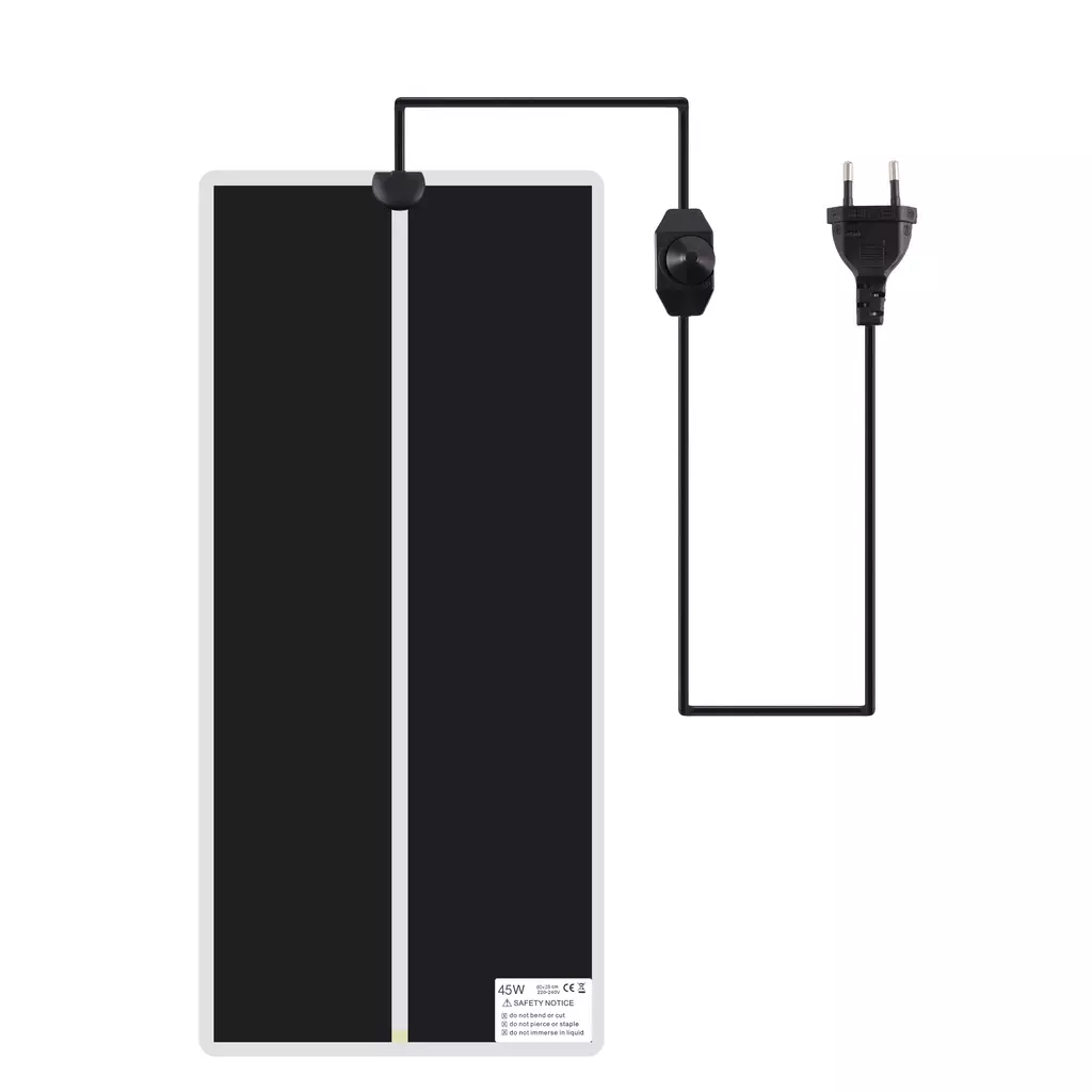 Com aquecimento por infravermelho distante, esse tapete simula o calor natural do sol, sem afetar a umidade do terrário. Seu controlador ajustável permite configurar a temperatura ideal de 0°C a 35°C com facilidade. E mais: o material é resistente, fino (apenas 0,6 mm), de fácil limpeza, e totalmente seguro quando utilizado corretamente.